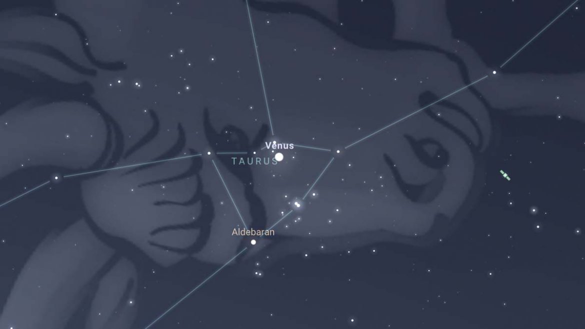 في سماء ما قبل الفجر الشرقي بين 3 و 12 يوليو ، سيتحرّك الزهرة مباشرة من خلال القلائص – هو عنقود نجمي مفتوح يُشاهَد بالعين المجردة بجوار نجم الدبران (ألمع نجوم كوكبة الثور) ، والتي تشكل وجه برج الثور.