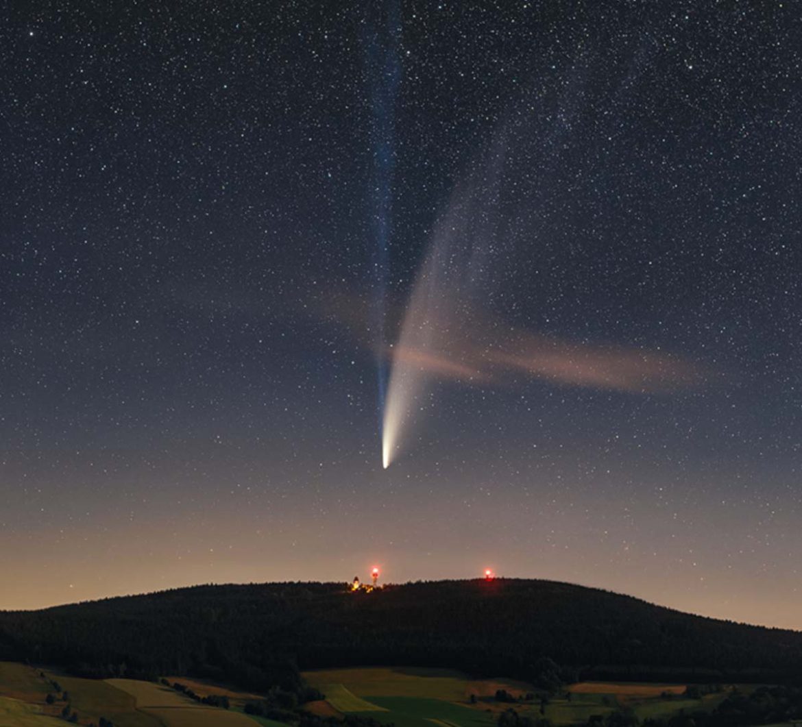 سماؤنا الشمالية الآن مبتهجة ومشرقة بضيفها المذهل (NEOWISE C/2020 F3). وفي هذا المنظر الخلاب الذي تم التقاطه من 13/14 يوليو يمكننا ملاحظة امتداد ذيله الطويل في سماء جبل تشيكيا .