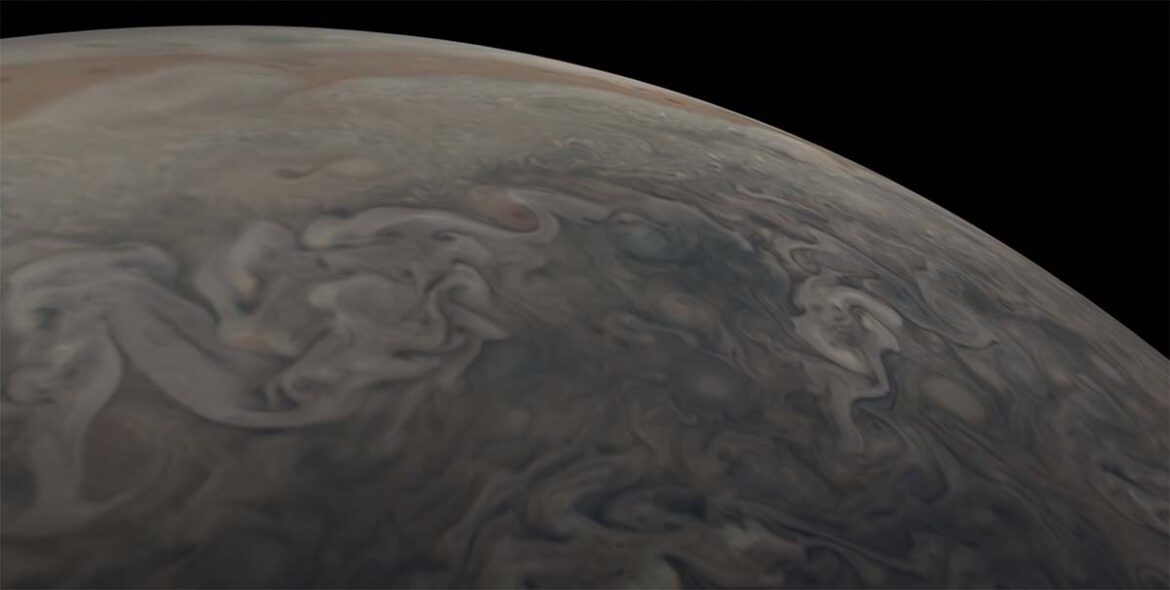 تم التقاط الـ 41 إطارًا الذي يتكون منها هذا الفيديو المذهل في شهر يونيو حيث كانت المركبة الفضائية الآلية جو في أقرب مسار لها من أكبر كوكب في مجموعتنا الشمسية، منذ وصول هذه المركبة إلى كوكب المشتري في عام 2016 اكتشفت جونو العديد من الحقائق المثيرة المتعلقة بكوكب المشتري كالتيارات النفاثة العميقة بشكل غير متوقع في الغلاف الجوي، وأقوى شفق قطبي تم تسجيله على الإطلاق ، والغيوم المحملة بالماء والتي كانت مجتمعة بالقرب من خط استواء المشتري.
