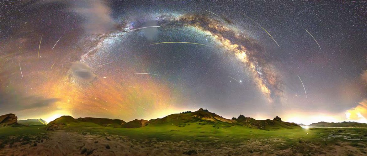 ترجع هذه الشهب التي تتراقص بشكل مذهل في مجرة درب التبانة إلى عائلة البرشاويات التي وصلت إلى ذروتها في الأسبوع الماضي، ومن الجدير ذكره أن هذه الصورة المميزة متعددة الإطار إلى جانب استخدامها تقنية الإسقاط متساوي المستطيلات تعتبر صورة مركبة للمرات المختلفة لمرور أحد شهب البرشاويات اللامعة في السماء الليلية.